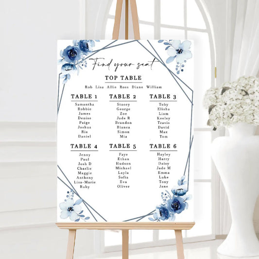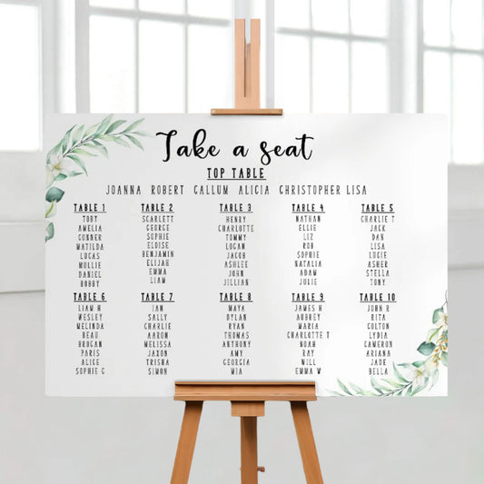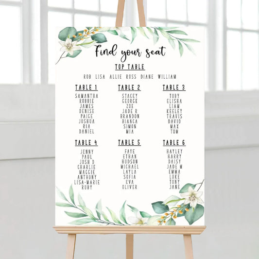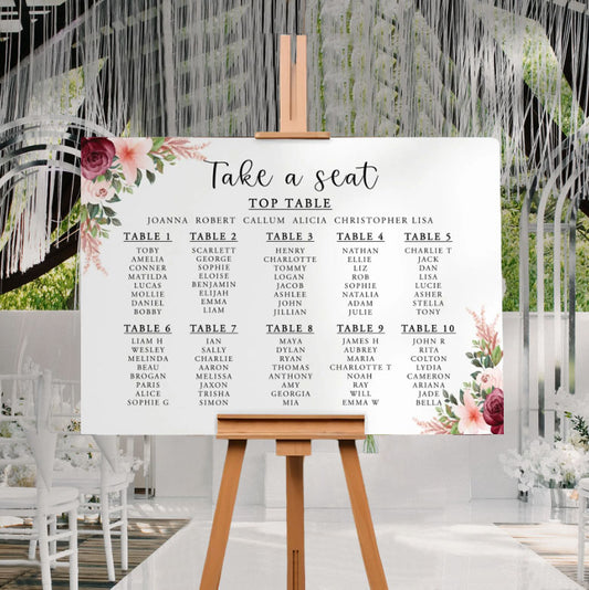 Burgundy and Peach Floral Seating Plan - 1 to 10 tables