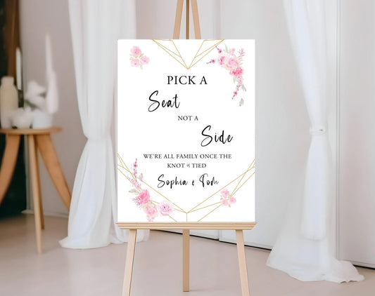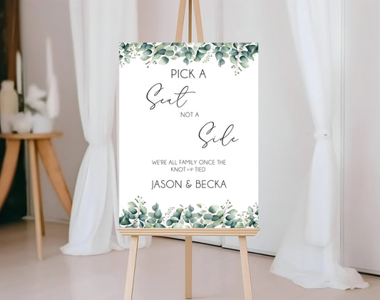 Personalised Eucalyptus Pick a Seat Not a Side Sign