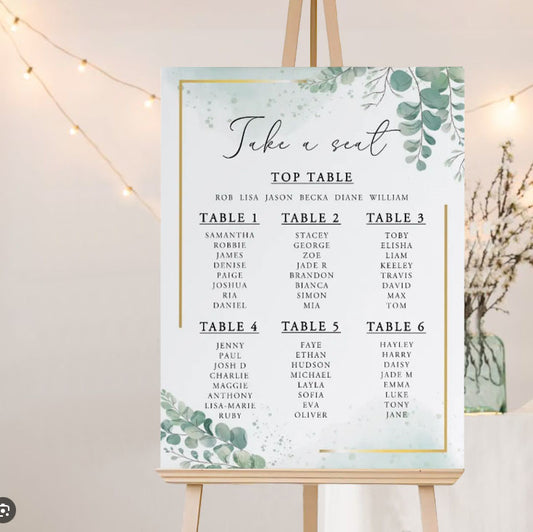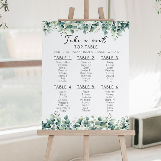 Personalised Eucalyptus Seating Plan - 1 to 6 tables