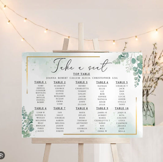 Personalised Eucalyptus Seating Plan - 1 to 10 tables