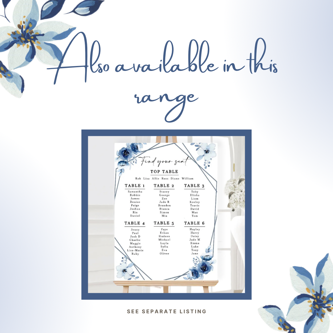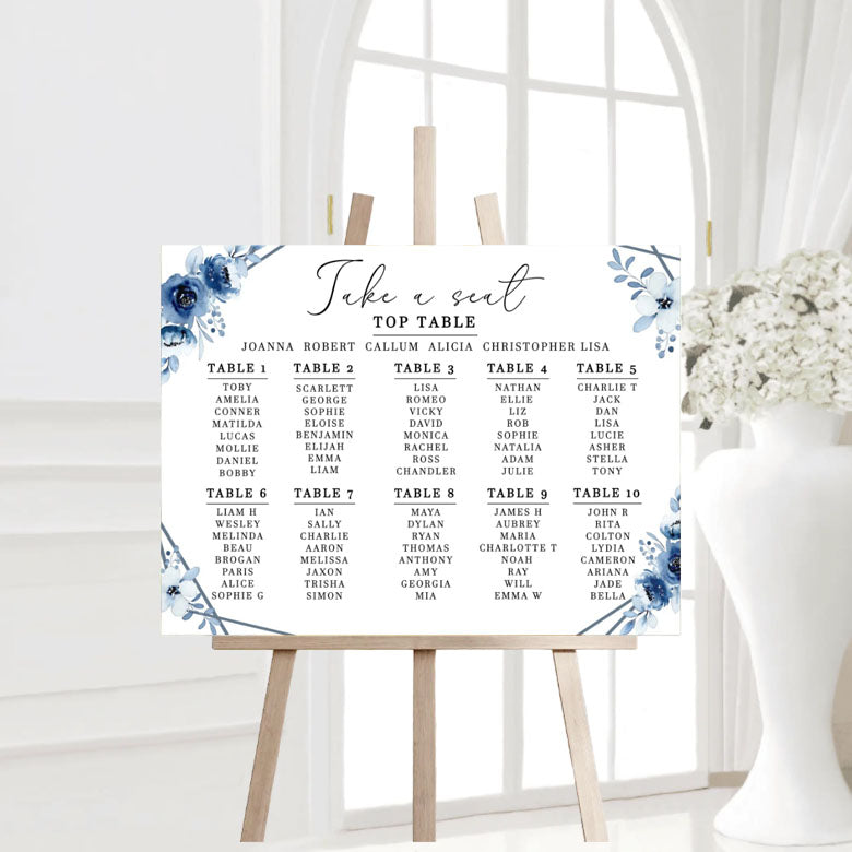 Get your guests seated in style with our Blue Floral Seating Plan.