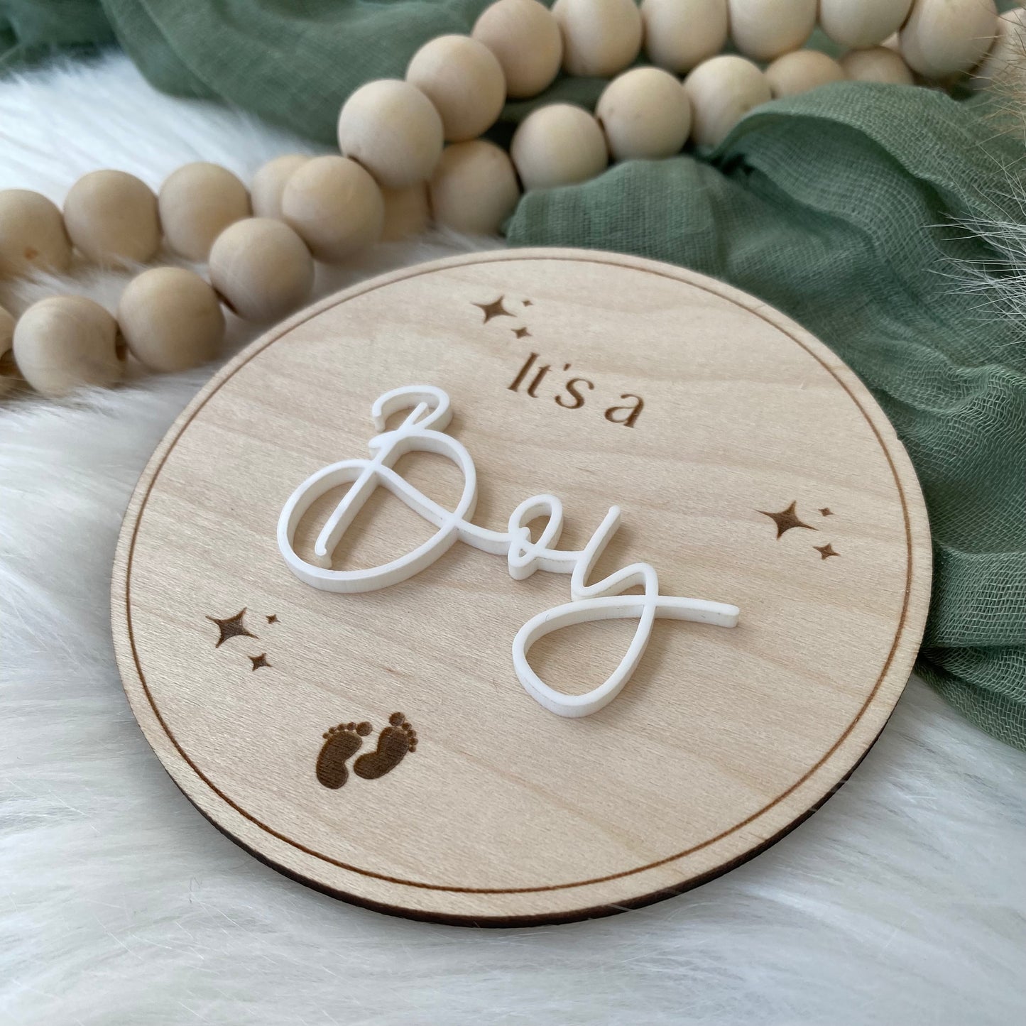Perfect as a social media prop to reveal if 'It's a girl or it's a boy', this unique pregnancy keepsake is crafted from high-quality maple wood, adding a rustic charm to your reveal. Share your joy with style and cherish the memory forever.