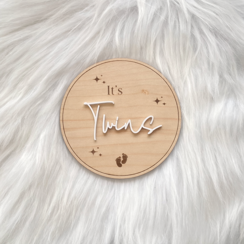 Celebrate the joy of double the love with this “It’s Twins” wooden announcement plaque — the perfect way to share your exciting twin pregnancy news. Crafted from maple wood and acrylic lettering and measuring 10cm in diameter, this keepsake features a timeless neutral design that photographs beautifully for announcements, flat lays, and nursery décor.