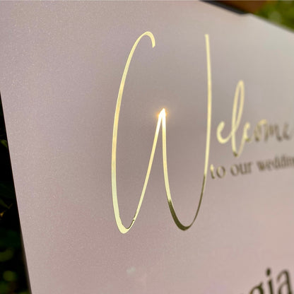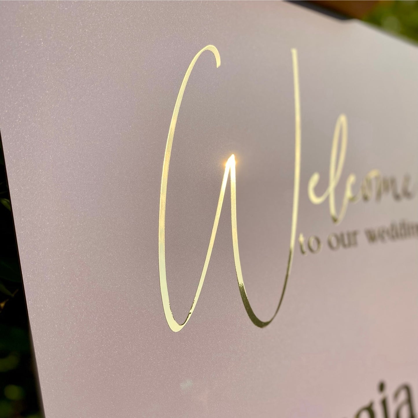 Can't find your perfect shade? Reach out to us, and we'll work with you to bring your vision to life. Make your wedding entrance unforgettable with our customisable Acrylic Welcome Sign, crafted to complement your unique style and create lasting memories for you and your guests.