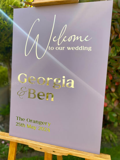 Welcome guests to your special day with our exquisite Personalised Acrylic Wedding Welcome Sign, a timeless addition to your celebration. Available in a range of colours and sizes, this sign offers versatility to suit any wedding theme.