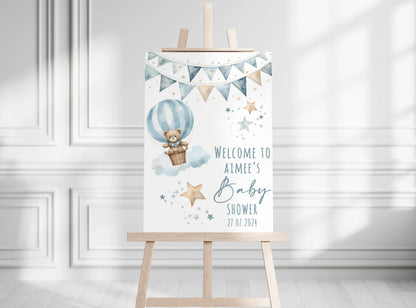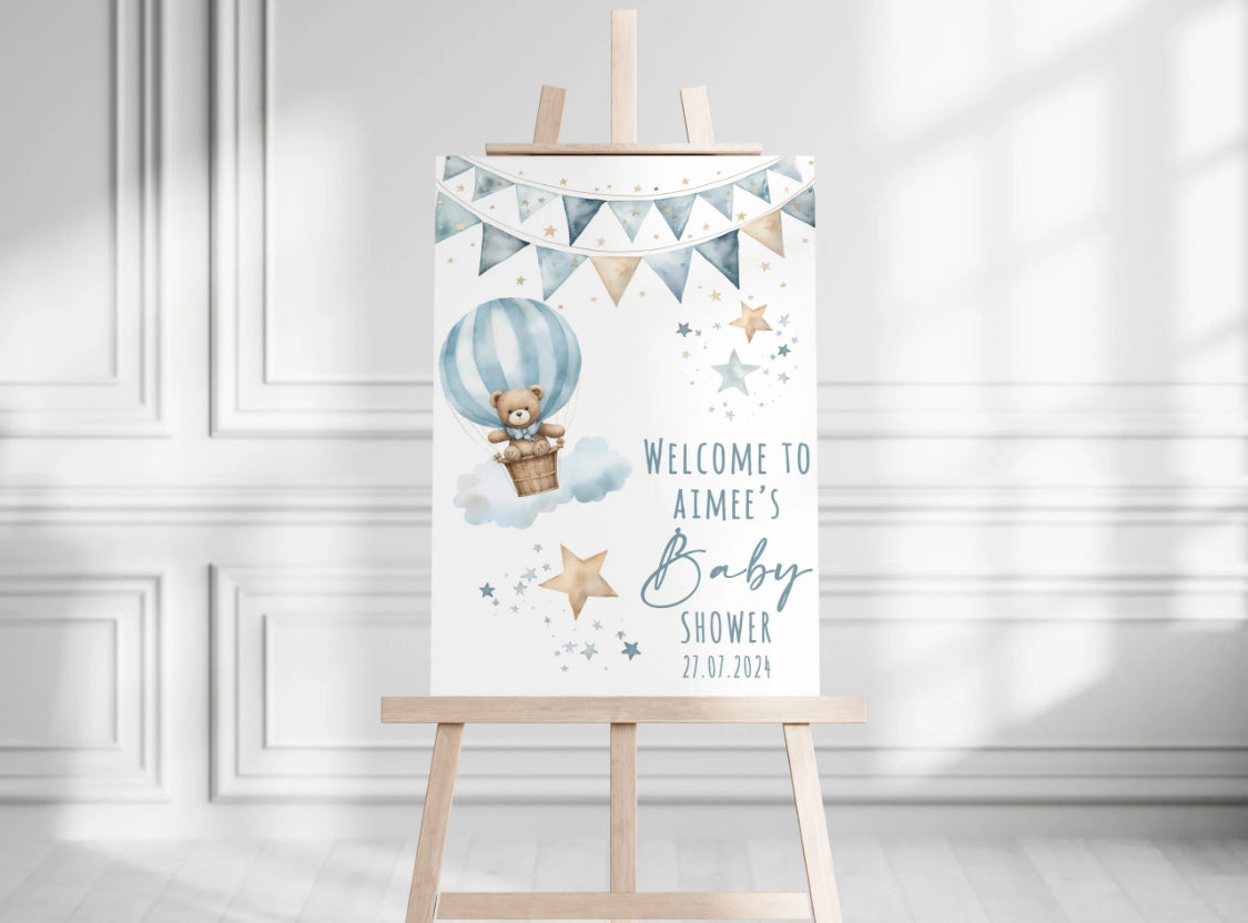 Personalised Baby Shower Welcome Sign - Blue Bear
