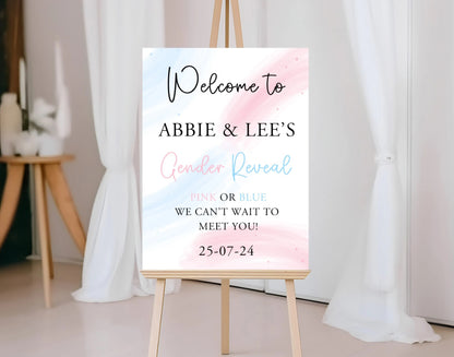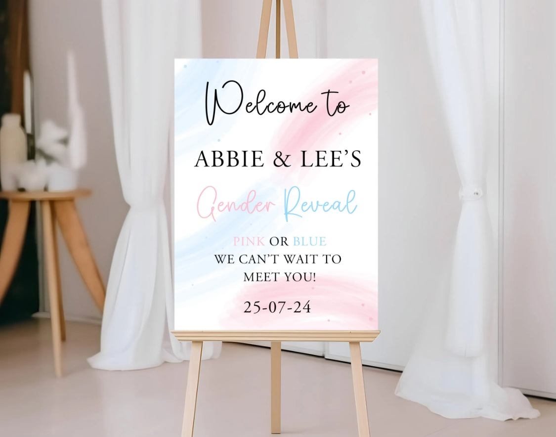 Make your big reveal even more memorable with our personalised Gender Reveal Party Welcome Sign! Available in your choice of A2 or A3 size, this sign is the perfect way to set the tone for your celebration.