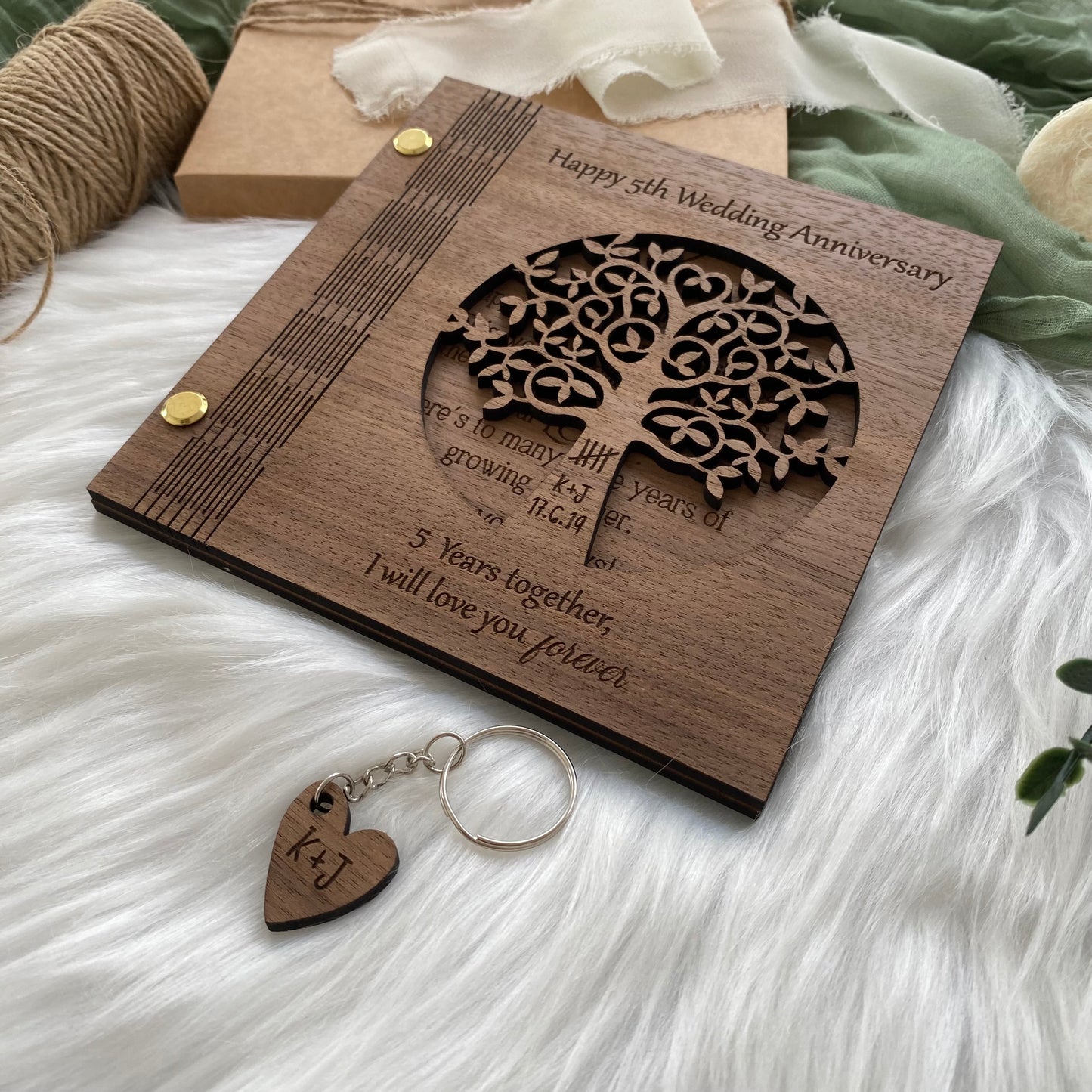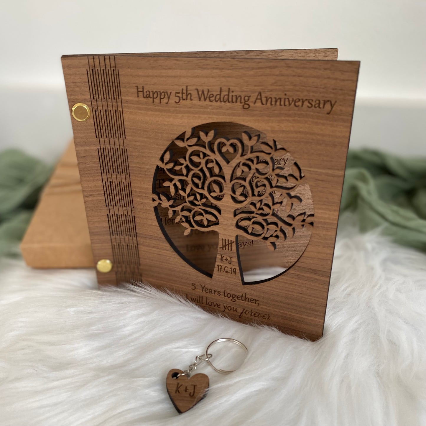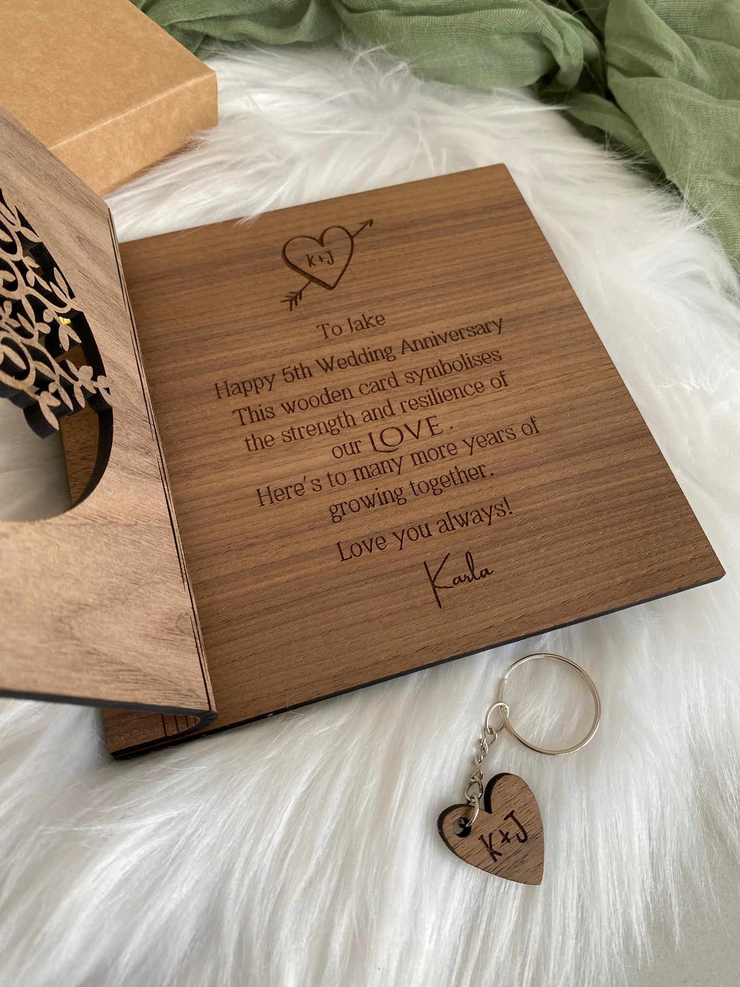 Custom Wooden 5th Wedding Anniversary Card and Keyring