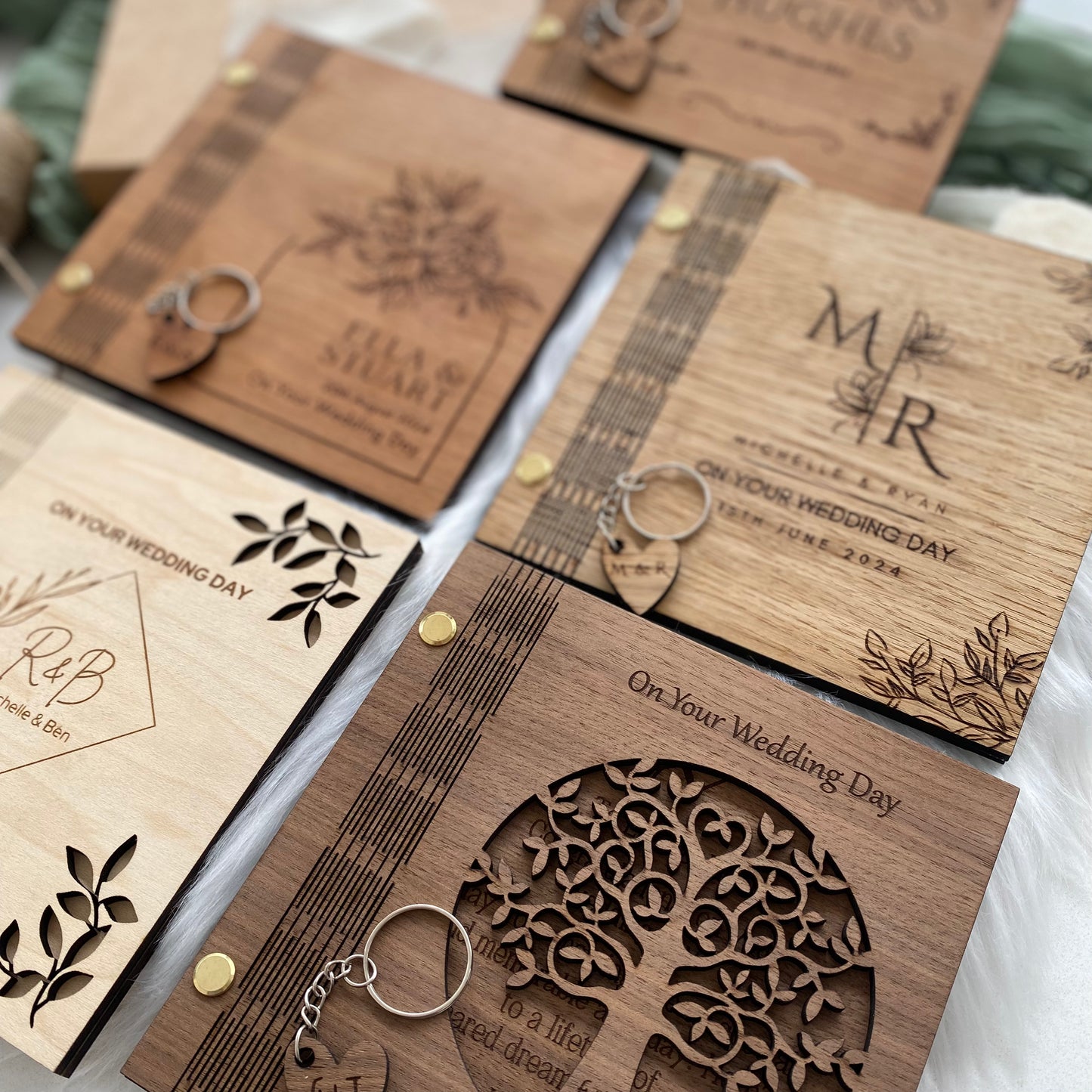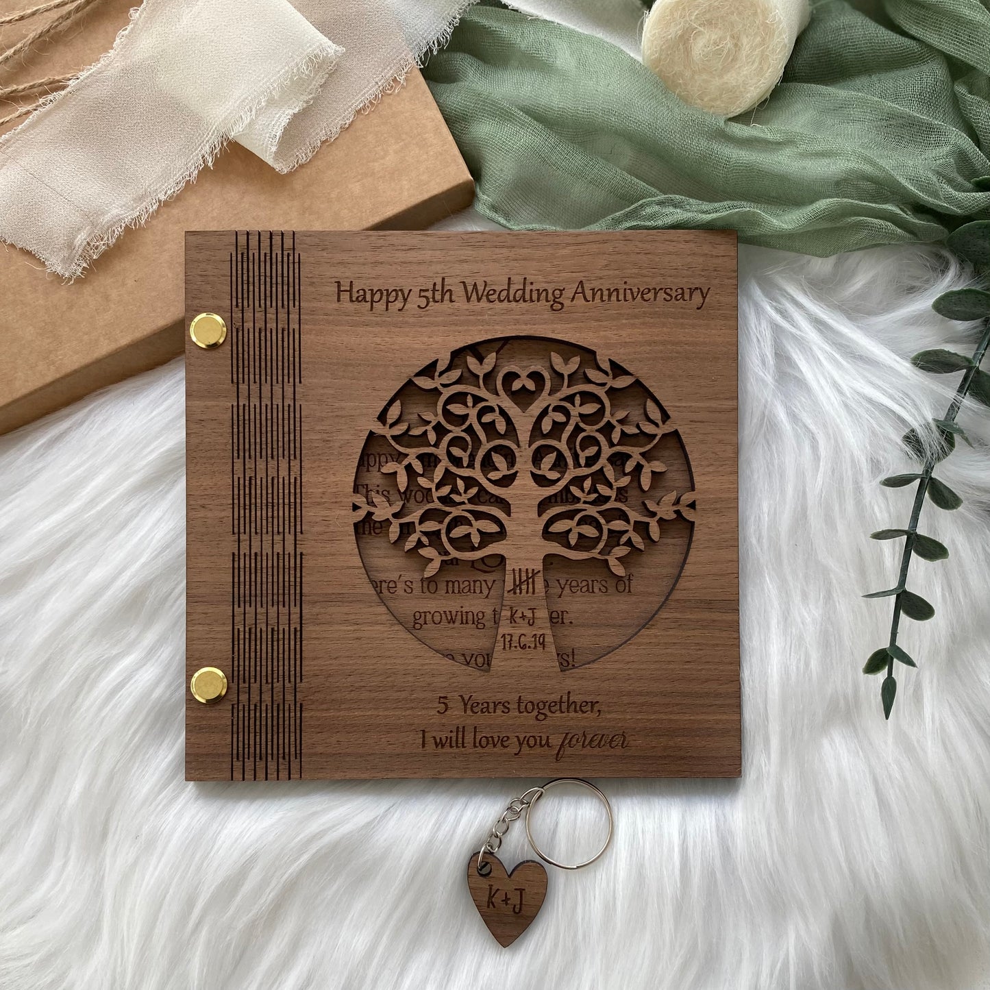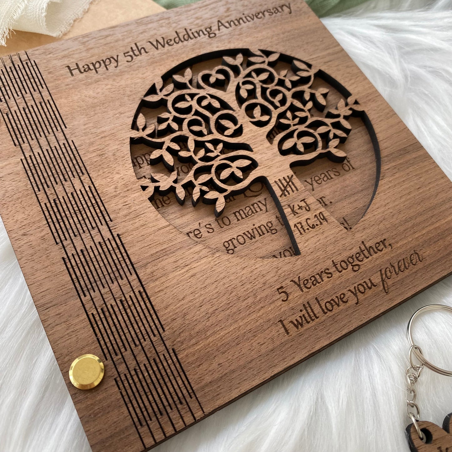 Custom Wooden 5th Wedding Anniversary Card and Keyring