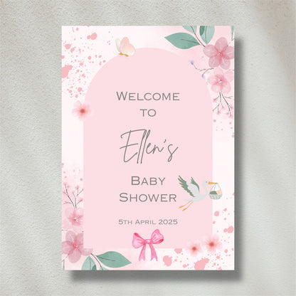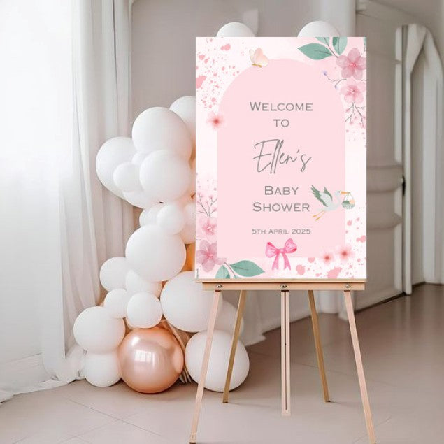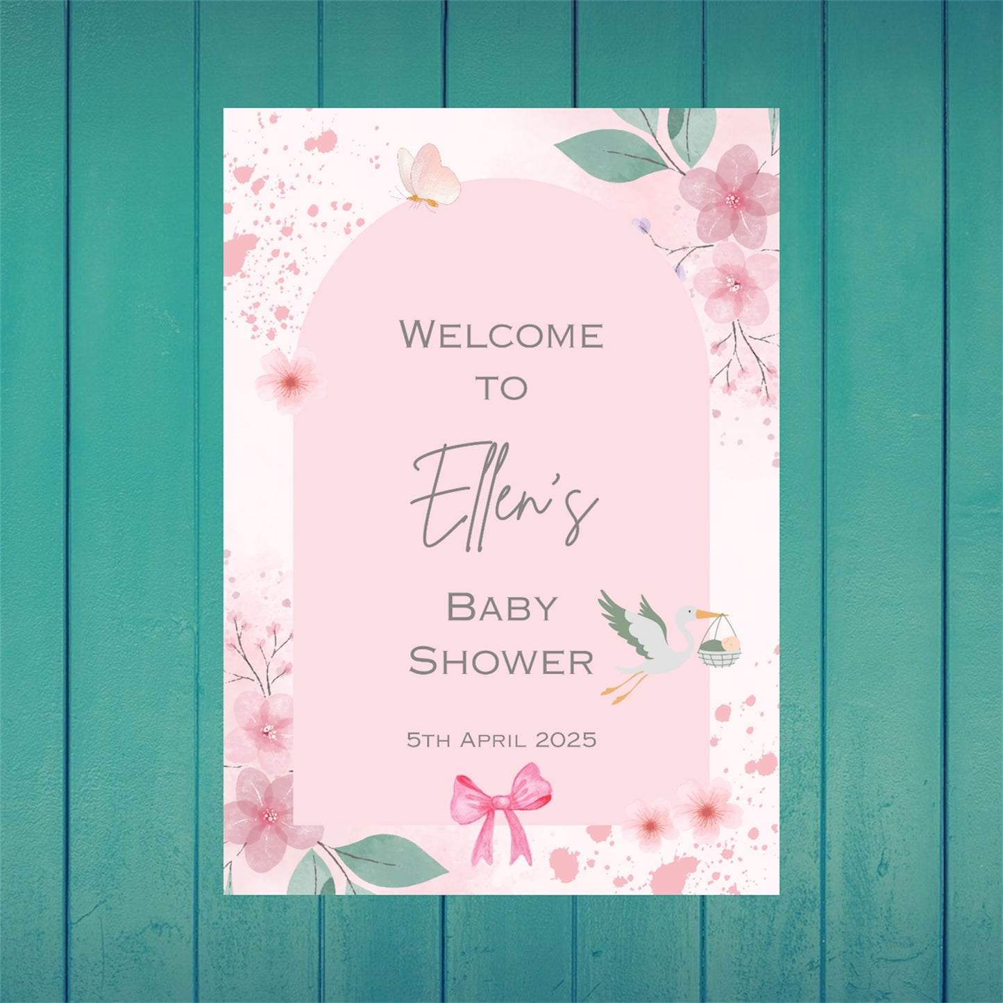 Welcome guests in style with our personalised baby shower welcome sign, designed to celebrate the mummy-to-be and her little girl on the way! Featuring a delicate pink floral design, this elegant sign adds a charming touch to your baby shower décor.